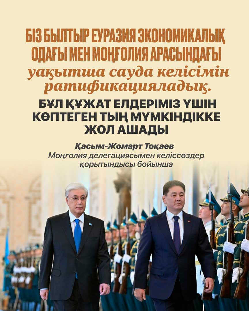 Қасым-Жомарт Тоқаев Моңғолия делегациясымен келіссөздер қорытындысы бойынша
