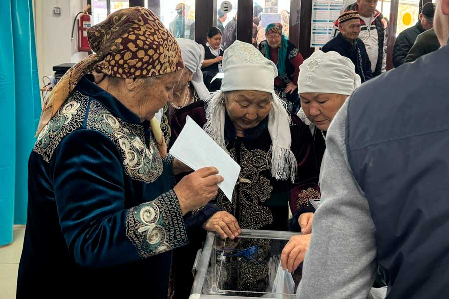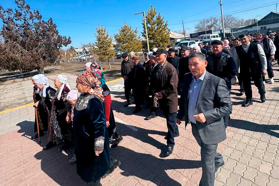 Таңмен таласа оянған тұрғындар дауыс беру үшін мектепке қарай бет алды. Ата Заңның маңызын терең түсінген ауыл халқы, азаматтық белсенділіктің үлгісін көрсетіп отыр.