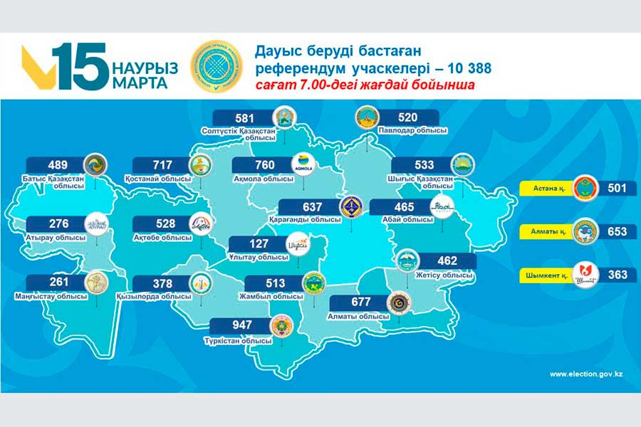 Орталық референдум комиссиясы облыстық, республикалық маңызы бар қалалар мен елордалық комиссиялардың деректеріне сүйене отырып, еліміздегі […]