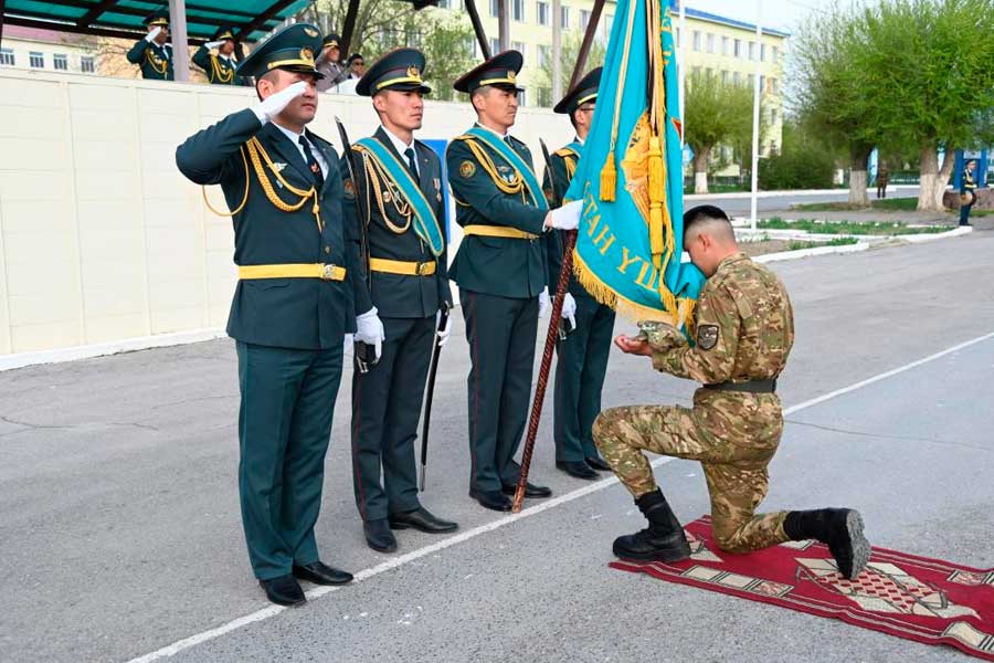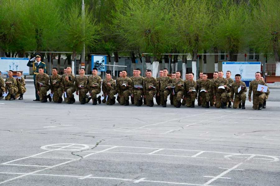 Оқу орнында Астана, Алматы, Тараз, Шымкент, Орал, Қостанай және Өскемен қалаларынан әскерге алынғандар жас жауынгер курсынан өтіп, әскери ант берді.
