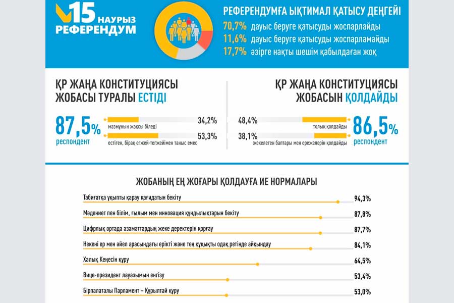 Респонденттердің 86,5%-ы Жаңа Конституция жобасын қолдайды